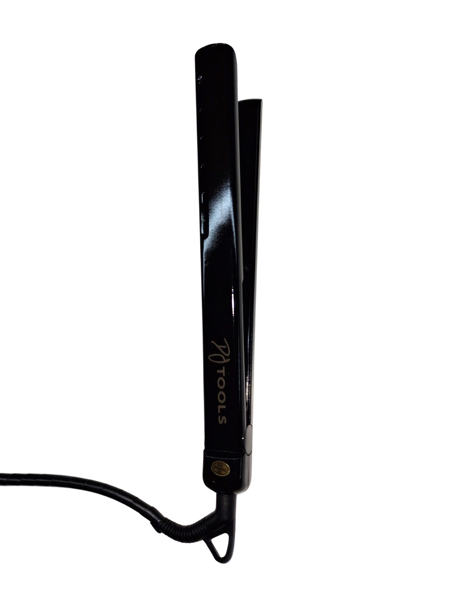1" professional flat iron with adjustable temperature control up to 450 degrees, 9-1/2 foot UL swivel cord; Ceramic tourmaline plates which create a shinier, silkier finish in less time, and steam release vents. Available in Black.